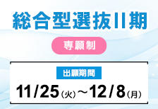 11/25(火)から12/8(月)まで総合型選抜Ⅱ期[専願制]の願書を受け付けます(成田キャンパスを除く)
