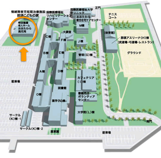 JR「那須塩原」駅から市営バス急行福祉大線で約20分